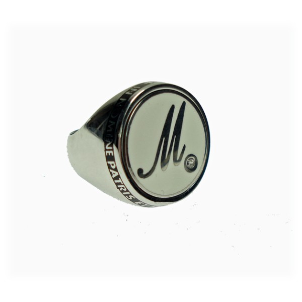 Anello unisex argento rodiato Icone Letters M chevalier con smalto bianco - Mediterraneo gioielli - SALDI
