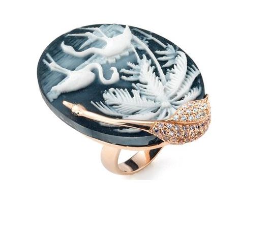 Cameo in resina e zirconi bianchi