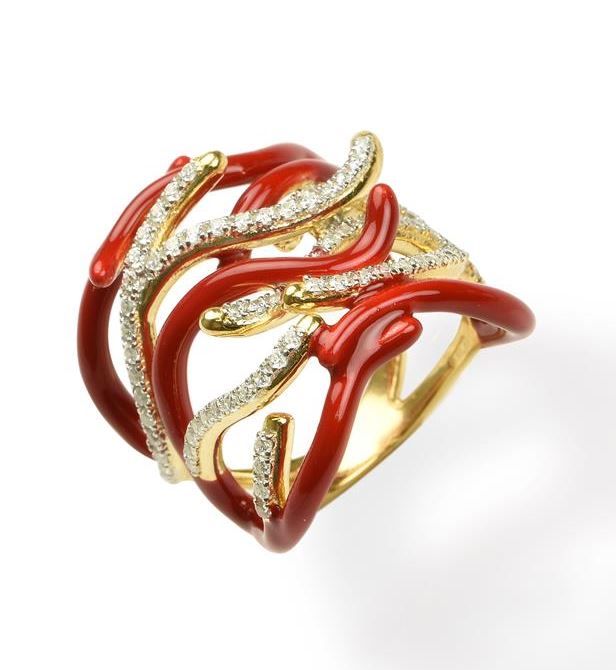 Anello donna argento placcato oro 18KT e Smalto Reef Party Misis gioielli