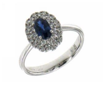 Anello donna oro bianco con Zaffiro Blu e diamanti Misura 13 - Mirco Visconti Gioielli