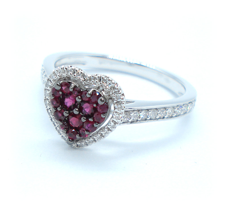 Scopri i dettagli di Anello donna oro bianco Cuore con Rubini e Diamanti misura 14 - Ny Nai by Fani gioielli