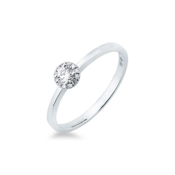 Scopri i dettagli di Anello donna oro bianco Solitario con contorno con diamanti ct. 0,11+0,05 F VS Misura 14 - Mirco Visconti Gioielli