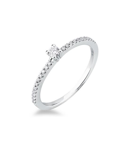Scopri i dettagli di Anello donna oro bianco Solitario con diamanti ct. 0,07+0,08 G VS Misura 15 - Mirco Visconti Gioielli