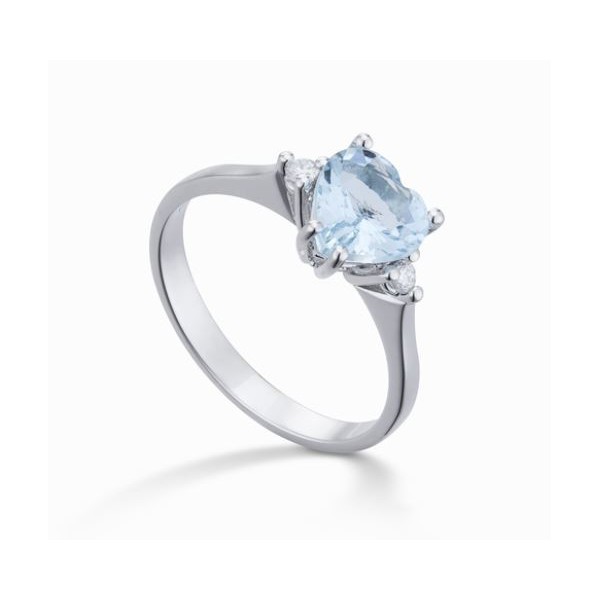Scopri i dettagli di Anello donna oro bianco Acquamarina Cuore con Diamanti - Golay