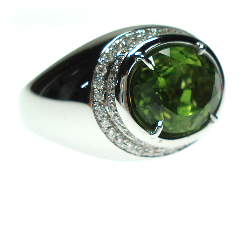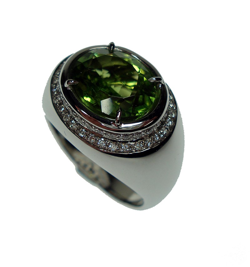Anello donna oro bianco Peridoto e Diamanti - Cicalese 1898