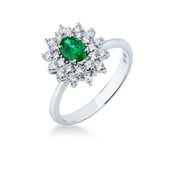 Anello donna oro bianco con Smeraldo e diamanti - Misura 13 - Mirco Visconti gioielli