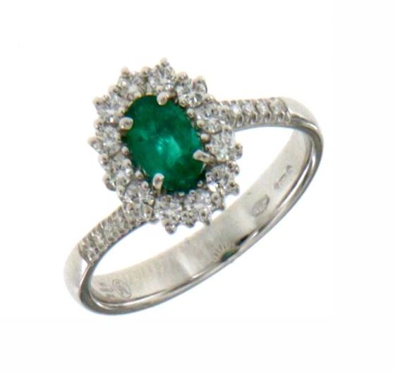 Anello donna oro bianco con Smeraldo e diamanti Misura 13 - Mirco Viscoti gioielli