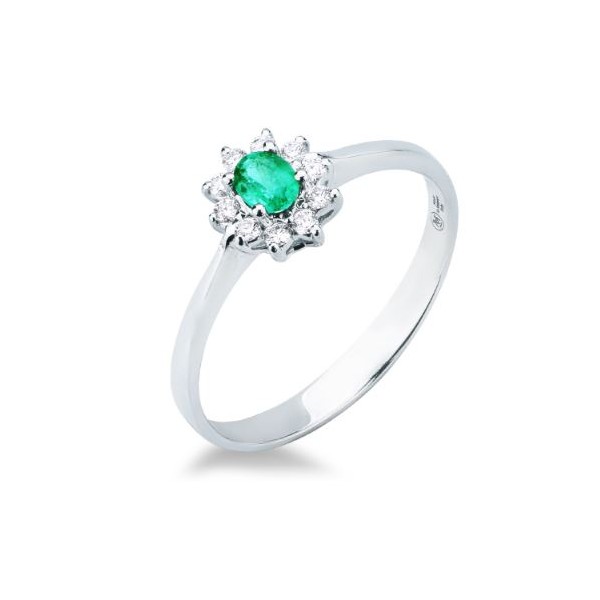 Anello donna oro bianco con Smeraldo e diamanti - Mirco Visconti gioielli