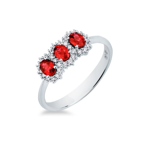Anello donna oro bianco Trilogy con Rubini e diamanti - Mirco Visconti Gioielli