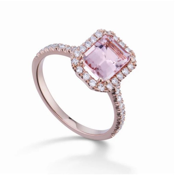 Anello donna oro rosa Morganite e Diamanti - Golay