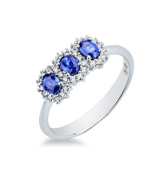 Anello Trilogy donna oro bianco con Zaffiri Blu e diamanti - Mirco Visconti gioielli