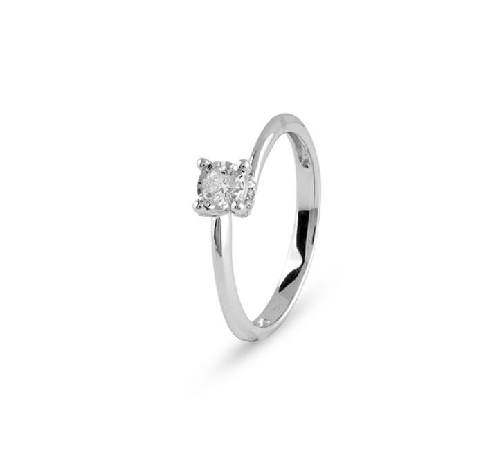 Anello donna oro bianco Solitario con Diamante Bliss Lumina