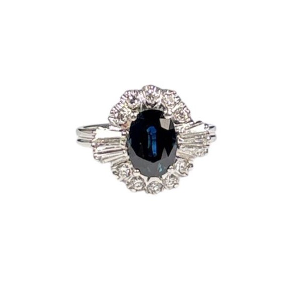 Anello donna oro bianco Zaffiro Blu Naturale e Diamanti - Cicalese 1898