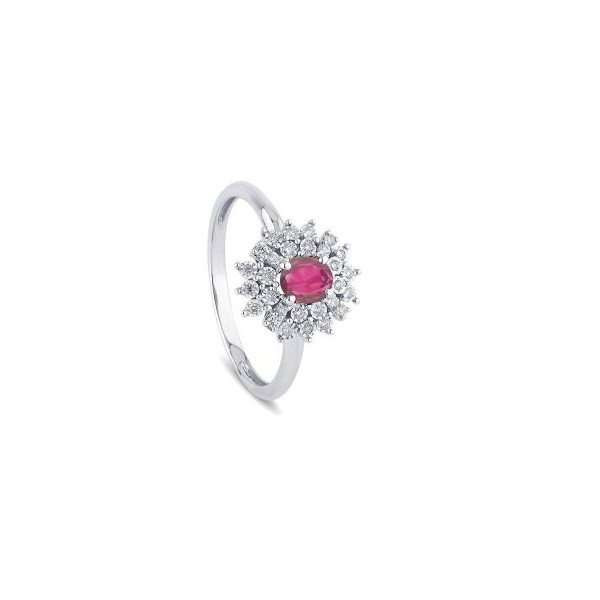 Anello donna con Diamanti e Rubino oro bianco 18Kt. Bliss Incanto