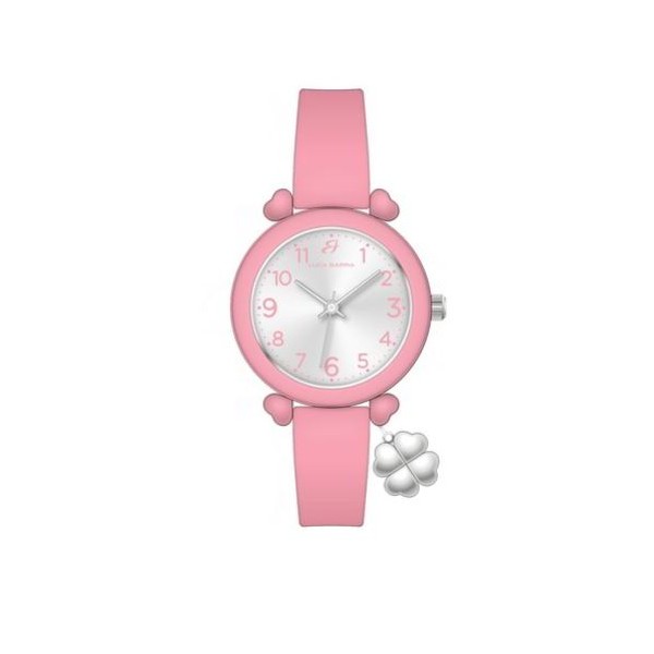 Orologio rosa con charm quadrifoglio. Diametro cassa: 31,5 mm Movimento Miyota, 5 ATM Solo Tempo