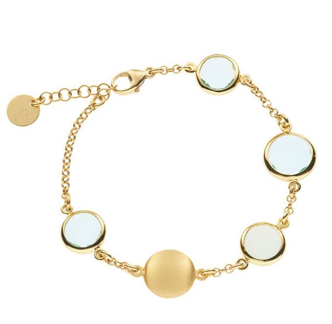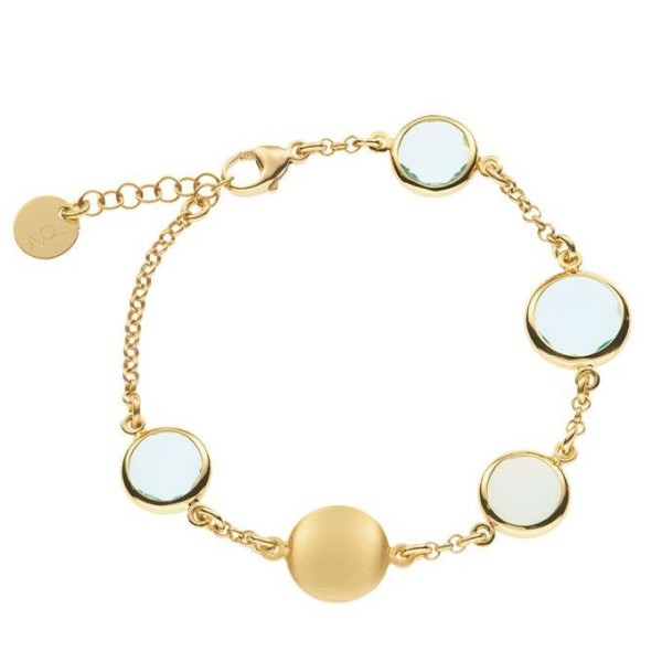 Bracciale in AG 925‰ placcato oro giallo 23 kt. con saponette e paste vitree acquamarina