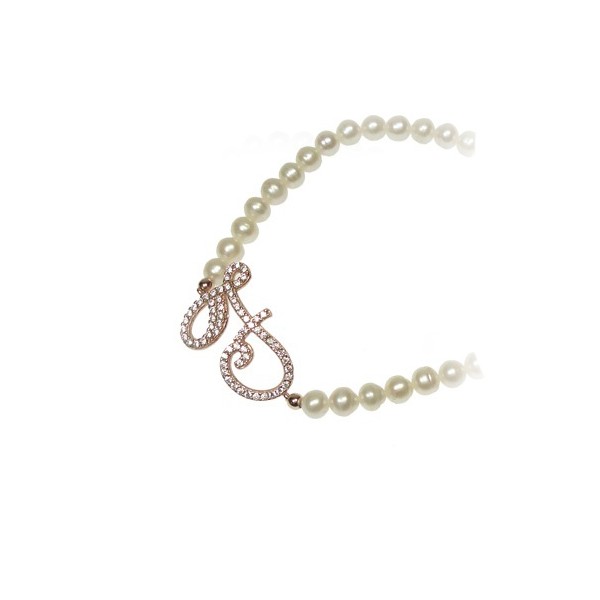 Scopri i dettagli di Bracciale donna argento rose gold con perle e cristalli - iniziale F - con gancio - Marcello Pane