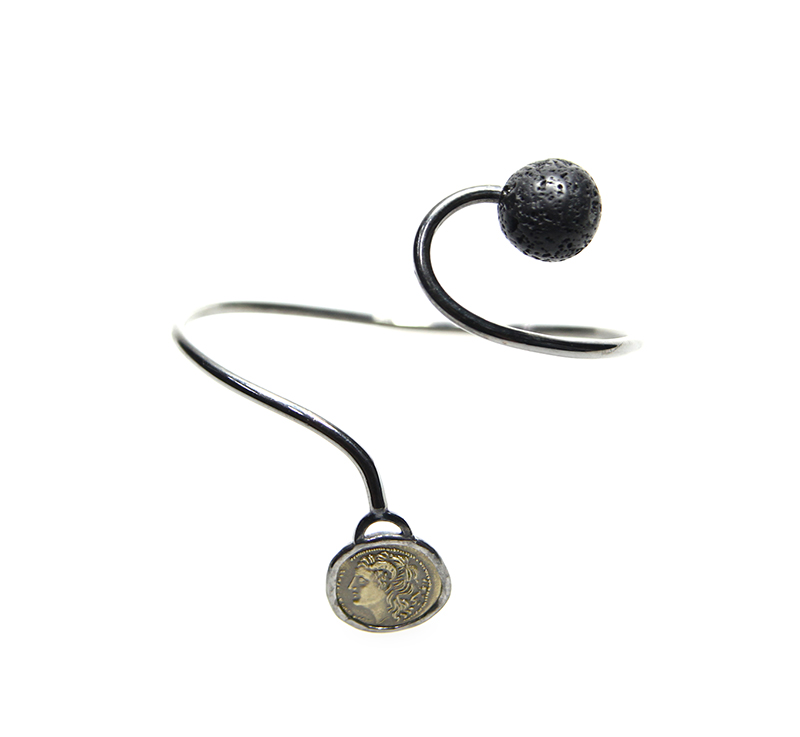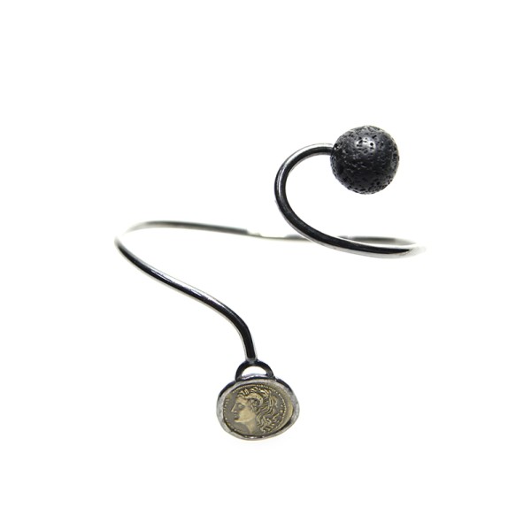 Scopri i dettagli di Bracciale donna rigido Made in Nuceria - Moneta Didramma in Bronzo - Pezzo Unico - Gioiello Artigianale - Minerva