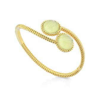 Scopri i dettagli di Bracciale donna argento dorato rigido pietra dura naturale verde chiaro- Mediterraneo gioielli