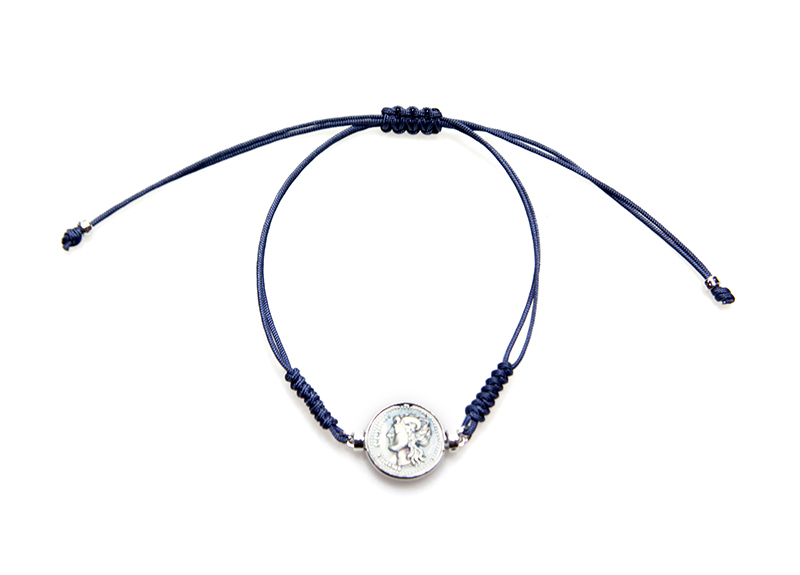 Scopri i dettagli di Bracciale unisex Made in Nuceria - Moneta Didramma in argento - cordino blu - Gioiello Artigianale - Marte