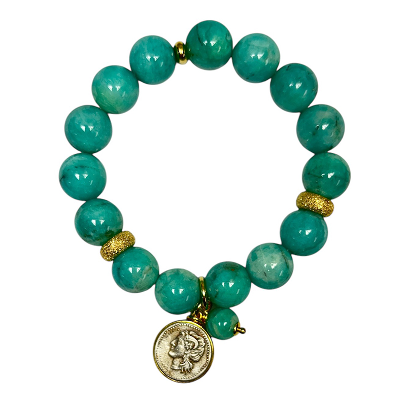 Scopri i dettagli di Bracciale donna Made in Nuceria - Moneta Didramma in argento - Amazzonite - Gioiello Artigianale - Iride