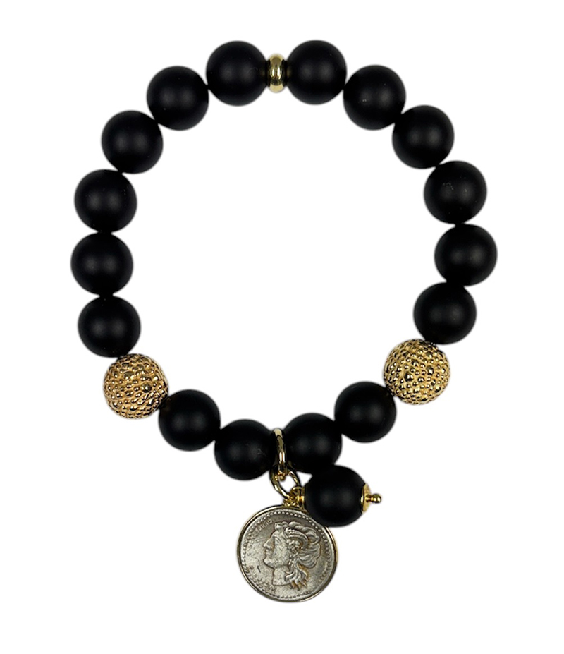 Bracciale donna Made in Nuceria - Moneta Didramma in argento - Onice - Gioiello Artigianale - Iride