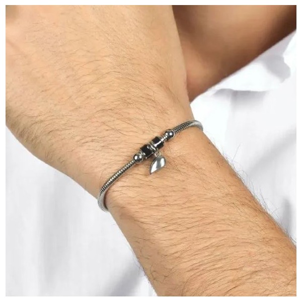 Bracciali in acciaio con mezzo cuore calamitato.
