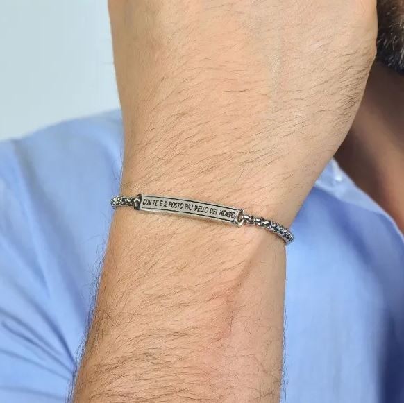 Questi braccialetti rappresentano un legame profondo e la certezza che condividere il tempo insieme è la cosa più preziosa. La scritta ""Con Te E' Il Posto Più Bello Del Mondo"" è delicatamente incisa, un promemoria costante della vostra connessione speciale.