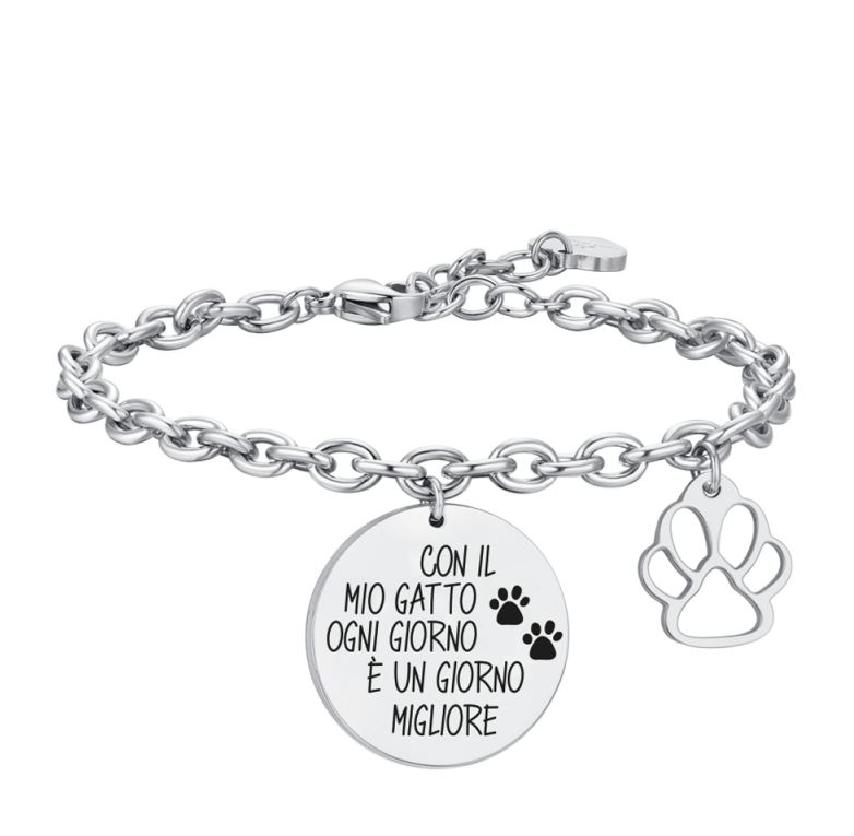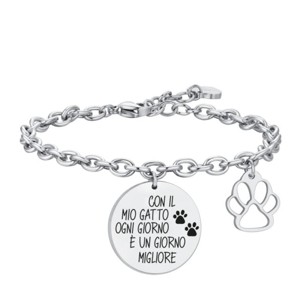 Bracciale donna acciaio Luca Barra Con il mio gatto ogni giorno è un giorno migliore