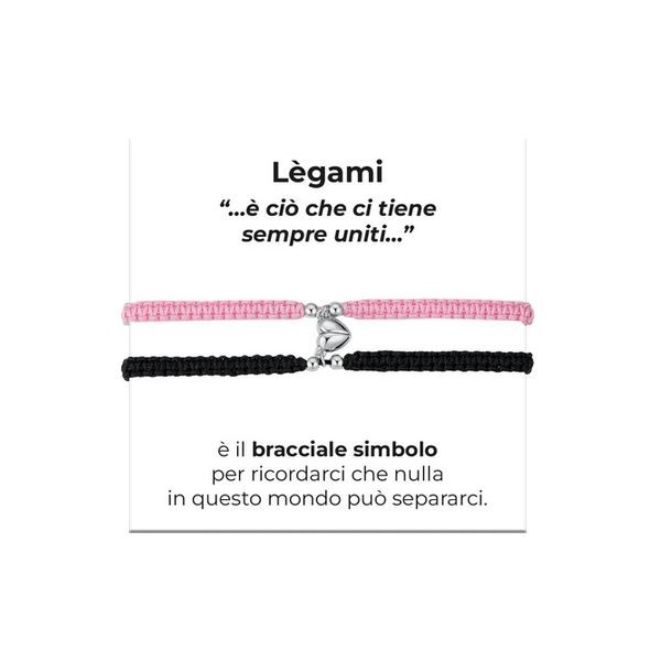 Bracciali donna e uomo in corda coreana rosa e nera con cuore calamitato Misura regolabile da 16 a 25 cm Misura cuore: 9 x 9 mm