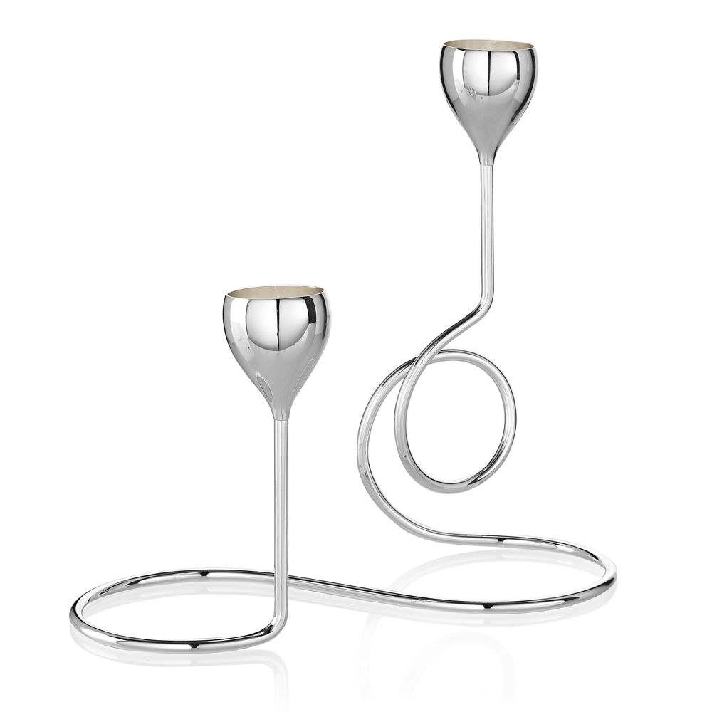 Candeliere Ottaviani in metallo argentato "Line A" h cm. 24,4