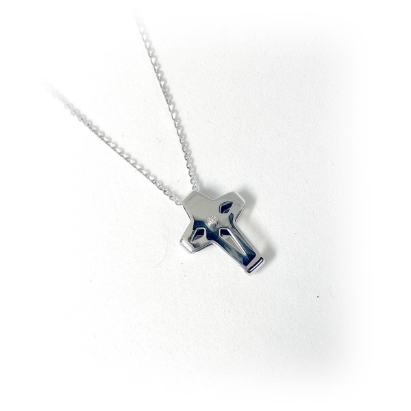 Collana uomo oro bianco Croce con diamanti - Zancan