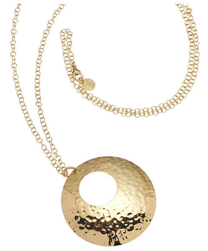 Collana in AG 925‰ placcato oro giallo 23 kt. con pendente effetto martellato diam. cm.5. Lunghezza Cm 80 + ext.
