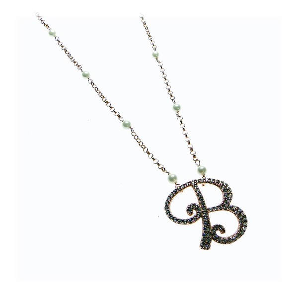 Collana donna argento rose gold con perle e cristalli - iniziale B - Marcello Pane