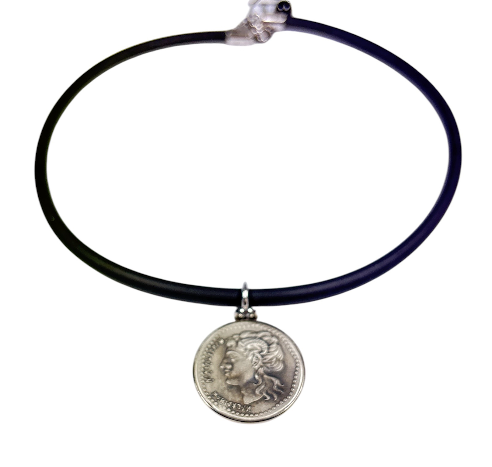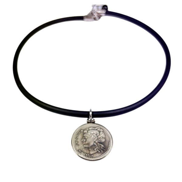 Scopri i dettagli di Collana Made in Nuceria - Didramma grande argento - Collezione Marte - Argento e Caucciù - Gioiello Artigianale