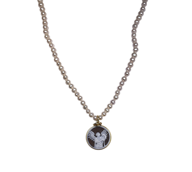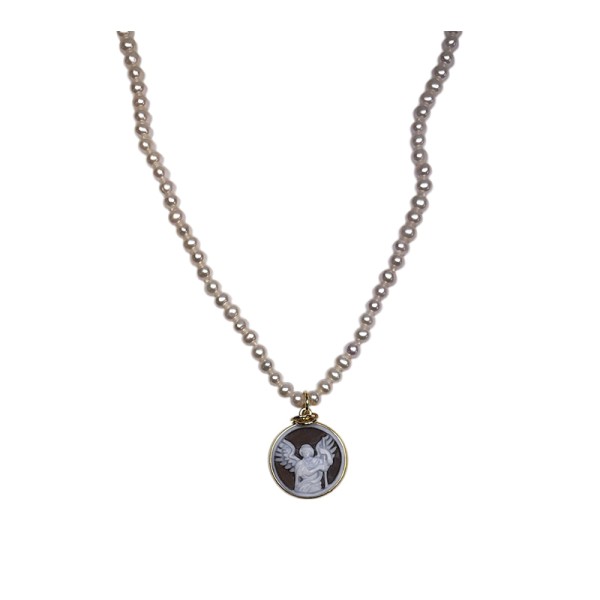 Scopri i dettagli di Collana Made in Nuceria - San Michele - I Simboli di Nuceria - Argento, Perle e Cameo inciso a mano - Gioiello Artigianale