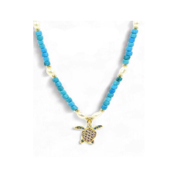 Collana argento placcato oro 18KT con pietre dure naturali Posidonia tartaruga Misis gioielli