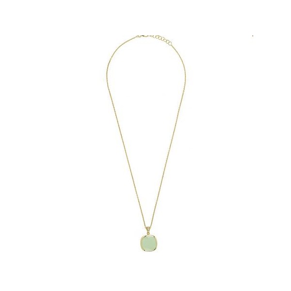 Girocollo con pendente in AG 925‰ placcato oro giallo 23 ct, cubic zirconia bianchi e pasta vitrea grande taglio antico verde milky. Cm 42 + ext