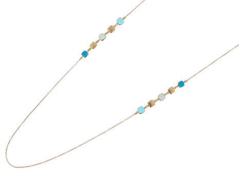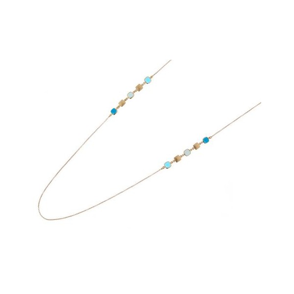 Collana con catena lunga, saponette satinate e pietre quadre sui toni del blu in AG 925‰ placcato oro giallo 23kt. argento 925‰
