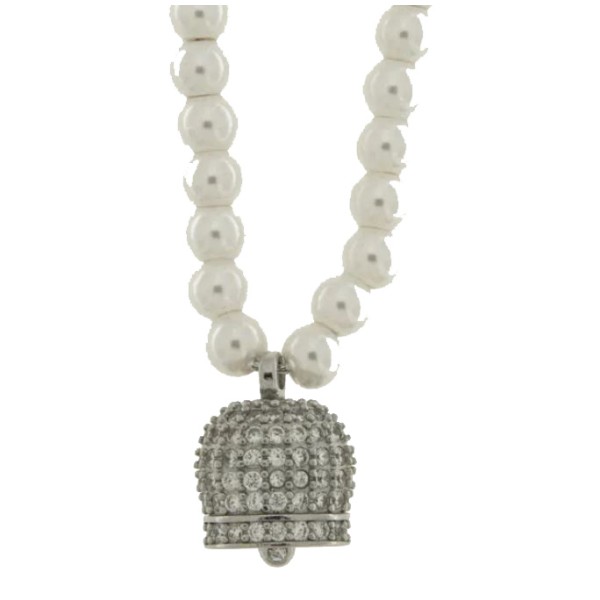 Collana donna argento perle con Campanella Portafortuna Capri By Simon