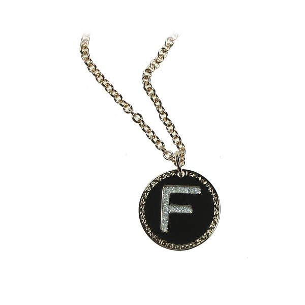 Scopri i dettagli di Word Glam collana pendente iniziale F in bronzo, acciaio rodiato dorato e glam film - Rebecca - SALDI
