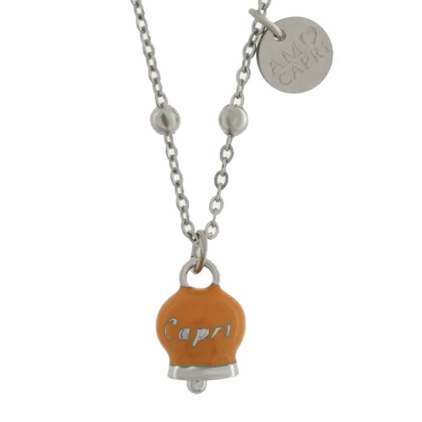 Collana donna acciaio con charms campanella portafortuna Amo Capri By Simon