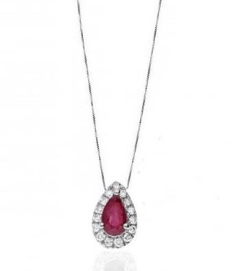 Collana donna oro bianco Bibigì Rubino goccia e Diamanti Pret-a-porter