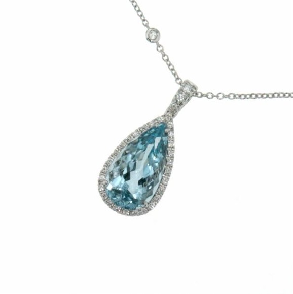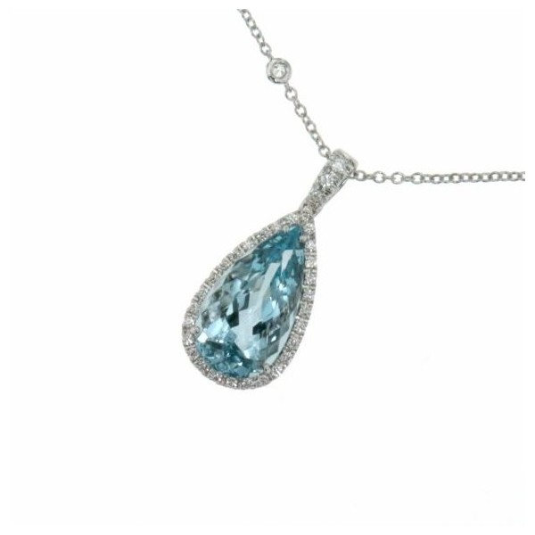 Scopri i dettagli di Collana donna oro bianco con Acquamarina goccia e diamanti - Mirco Visconti Gioielli