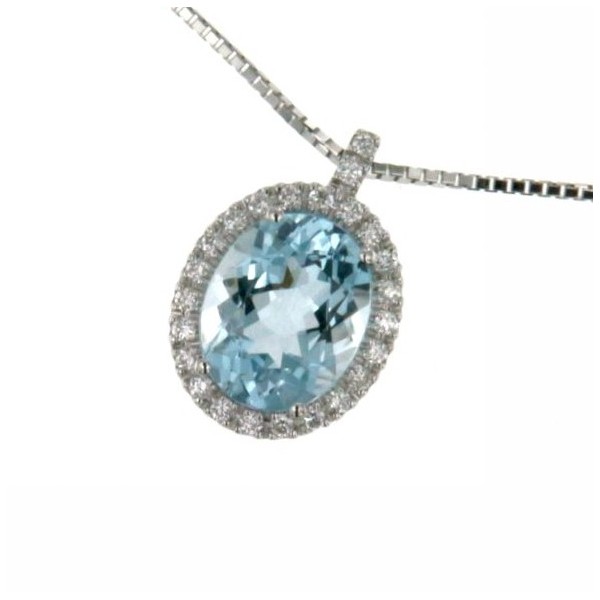 Collana donna oro bianco con Acquamarina ovale e diamanti - Mirco Visconti Gioielli