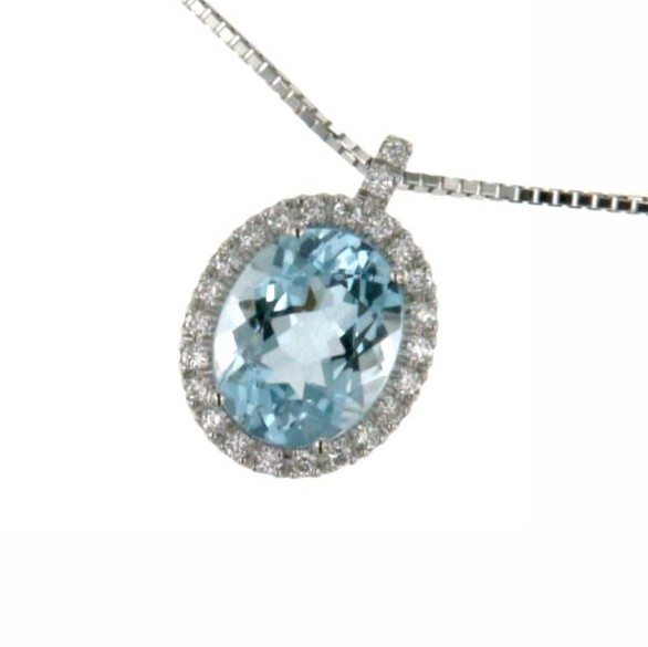 Scopri i dettagli di Collana donna oro bianco con Acquamarina ovale e diamanti - Mirco Visconti Gioielli