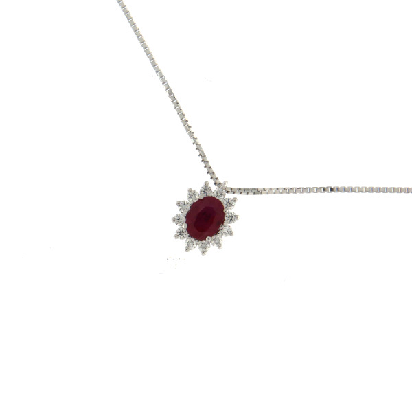 Collana donna oro bianco con Rubino e diamanti - Cicalese Gioielli Valenza Made in Italy