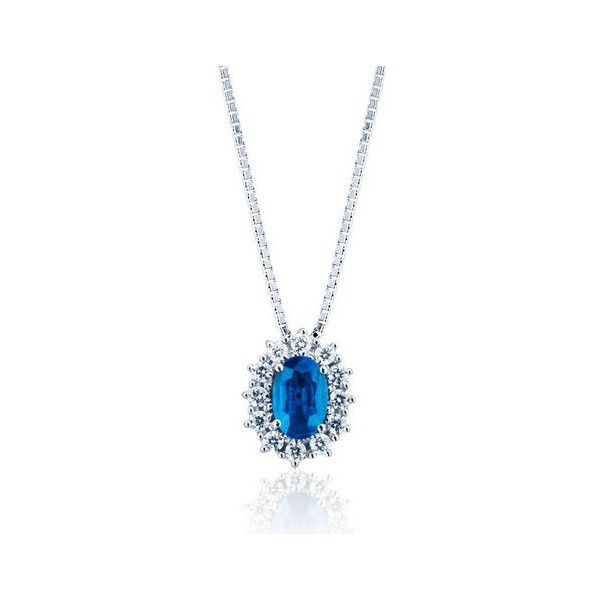 Collana donna oro bianco con Zaffiro Blu e diamanti - Cicalese Gioielli Valenza Made in Italy