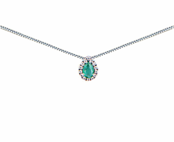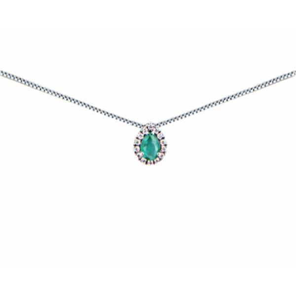 Collana donna oro bianco Bibigì Smeraldo goccia e Diamanti Pret-a-porter