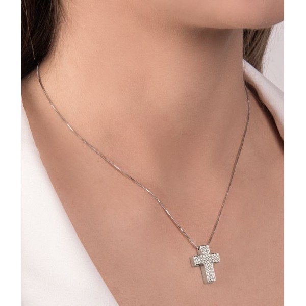 Collana donna oro bianco Croce con diamanti tot. ct. 0,30 - Mirco Visconti gioielli